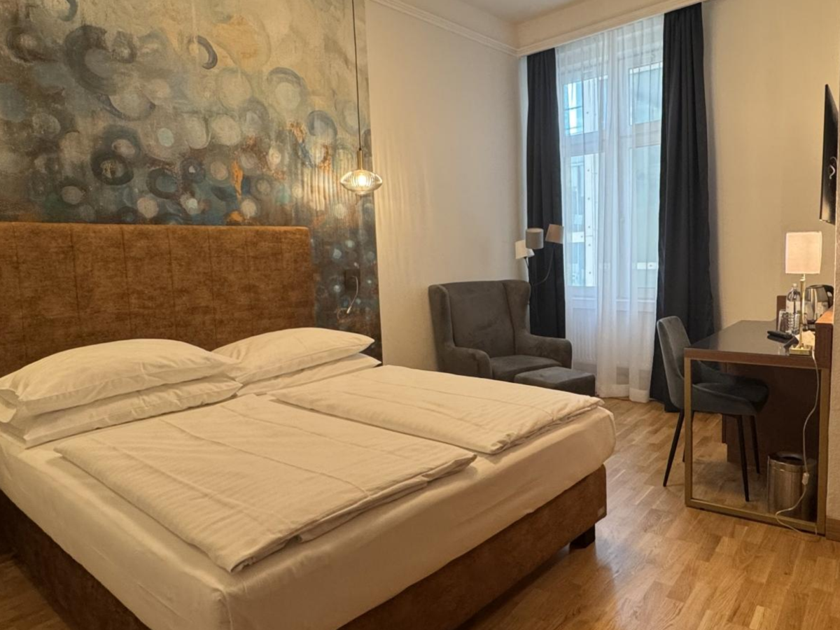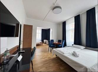 Link to Photo24, a room with two beds and a table