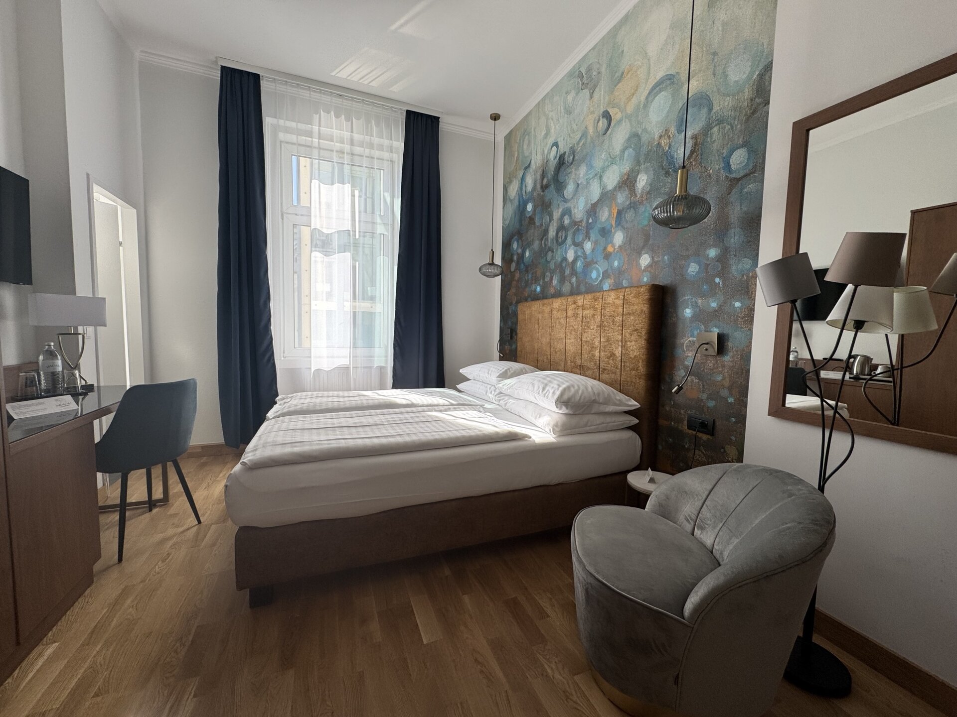 Settle in and enjoy modern comfort in the elegant and inviting rooms of Hotel Secession. Our rooms are thoughtfully designed to provide both relaxation and productivity, featuring contemporary furnishing and all essential amenities for a comfortable stay in the heart of Vienna. Stay connected with complimentary Wi-Fi, unwind after a day of exploring the city, and start your morning refreshed before discovering Vienna’s cultural landmarks, shopping streets, and historical attractions — all just steps from the hotel.